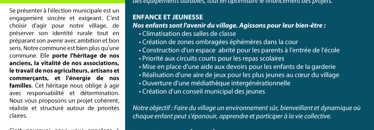 Notre profession de foi pour les élections municipales de ce dimanche 15 mars est actuellement en cours de distribution dans toute la commune.